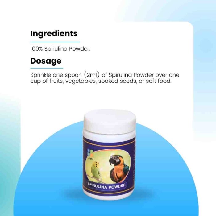 How to Incorporate: Blend Leas Spirulina Powder into your birds’ daily diet by adding it to their regular food or offering it in a treat cup. Ensure a balanced and nutrient-rich diet for optimal avian health.